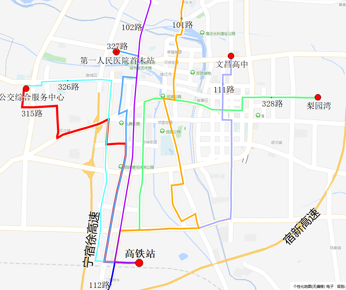 延伸102路(湖濱新區(qū)全域旅游集散中心—宿遷高鐵站):