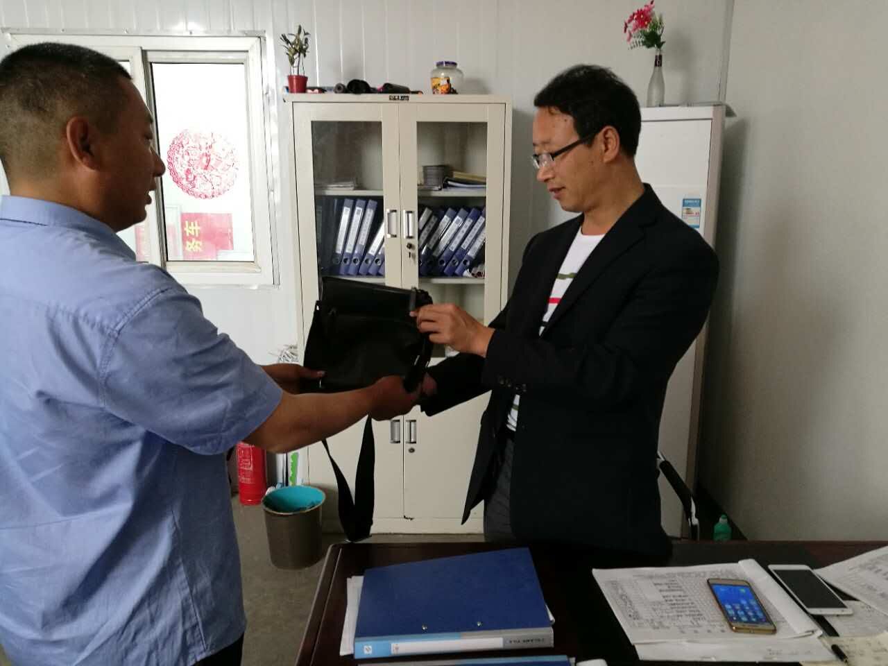 駕駛員朱力省駕車返回終點(diǎn)站財(cái)貿(mào)城站,清掃車廂衛(wèi)生時(shí),發(fā)現(xiàn)了沈大爺丟失的手提包,想到失主肯定很焦急,他毫不猶豫的將手提包上交到調(diào)度室。調(diào)度室站務(wù)員打開手提包,發(fā)現(xiàn)內(nèi)有兩千余元現(xiàn)金和兩部手機(jī),其中一部為蘋果手機(jī),此外還有身份證和銀行卡若干。幸好,站務(wù)員通過手提包內(nèi)的手機(jī)找到了沈大爺家人的聯(lián)系方式,朱師傅便第一時(shí)間給沈大爺家人打了電話,讓他將遺失的手提包領(lǐng)回去。當(dāng)日下午,沈大爺在家人的陪同下來到財(cái)貿(mào)城調(diào)度站感謝朱師傅,沈大爺激動(dòng)的緊緊握著駕駛員朱力省的手,說道:“我和朱師傅及公交公司的工作人員素不相識,但他們卻用奉獻(xiàn)和愛心踐行了雷鋒精神,用實(shí)際行動(dòng)傳播著正能量。今后,大家一定要向他們學(xué)習(xí),讓這種正能量繼續(xù)傳承下去。”