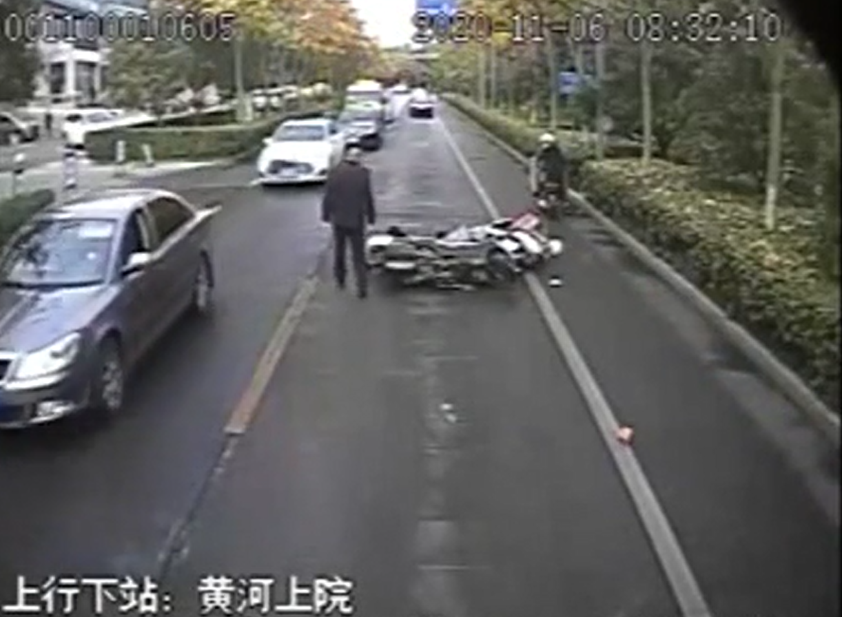 公交駕駛員及時(shí)出手 救起摩托車下被壓男子