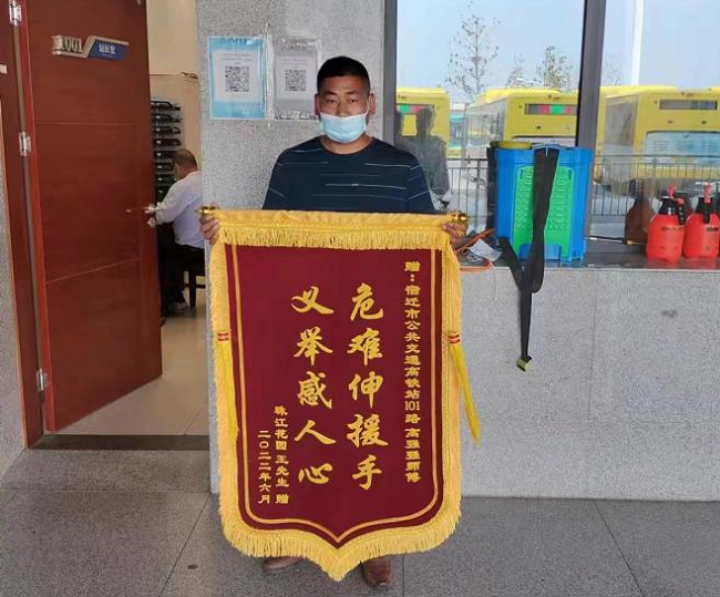 近日,市民王先生將一面印有“危難伸援手,義舉感人心”的錦旗送到高鐵公交首末站,表揚101路駕駛員高強強不懼危險,幫助自己車輛滅火的事跡。