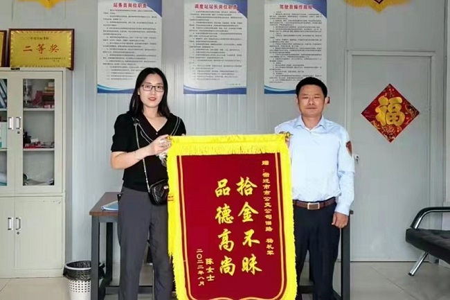 近日,市民陳女士親自將一面寫有“拾金不昧 品德高尚”的錦旗,送到了第一人民醫(yī)院公交首末站108路駕駛員楊禮軍手中,表達對楊師傅拾金不昧行為的感謝。