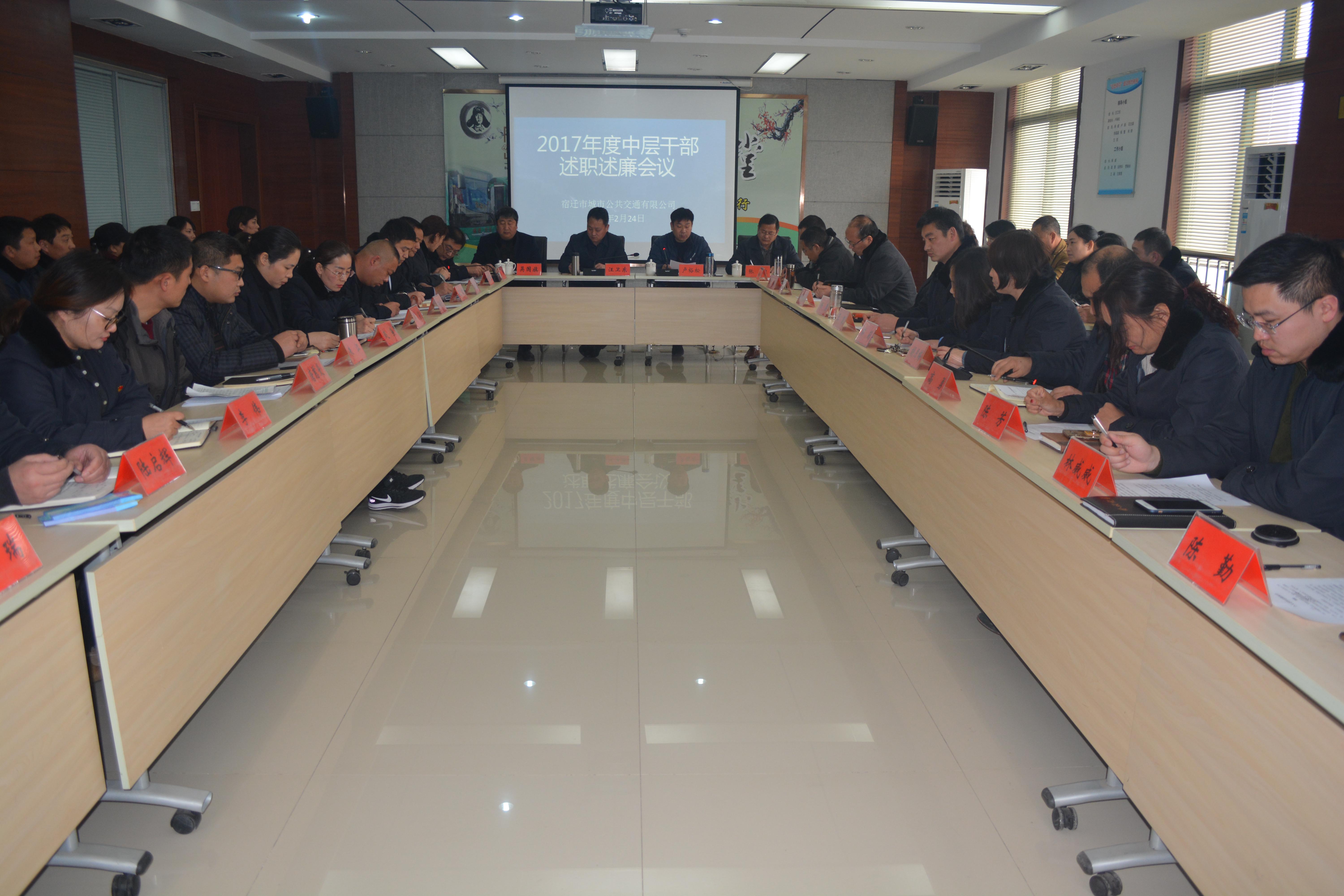 2月24日下午,在市交通集團黨委統一部署下,市公交公司召開2017年度全體中層干部述職述廉會議,促進全體干部職工進一步轉變工作作風,扎實工作,推動公交各項工作在新的一年里再上新臺階。