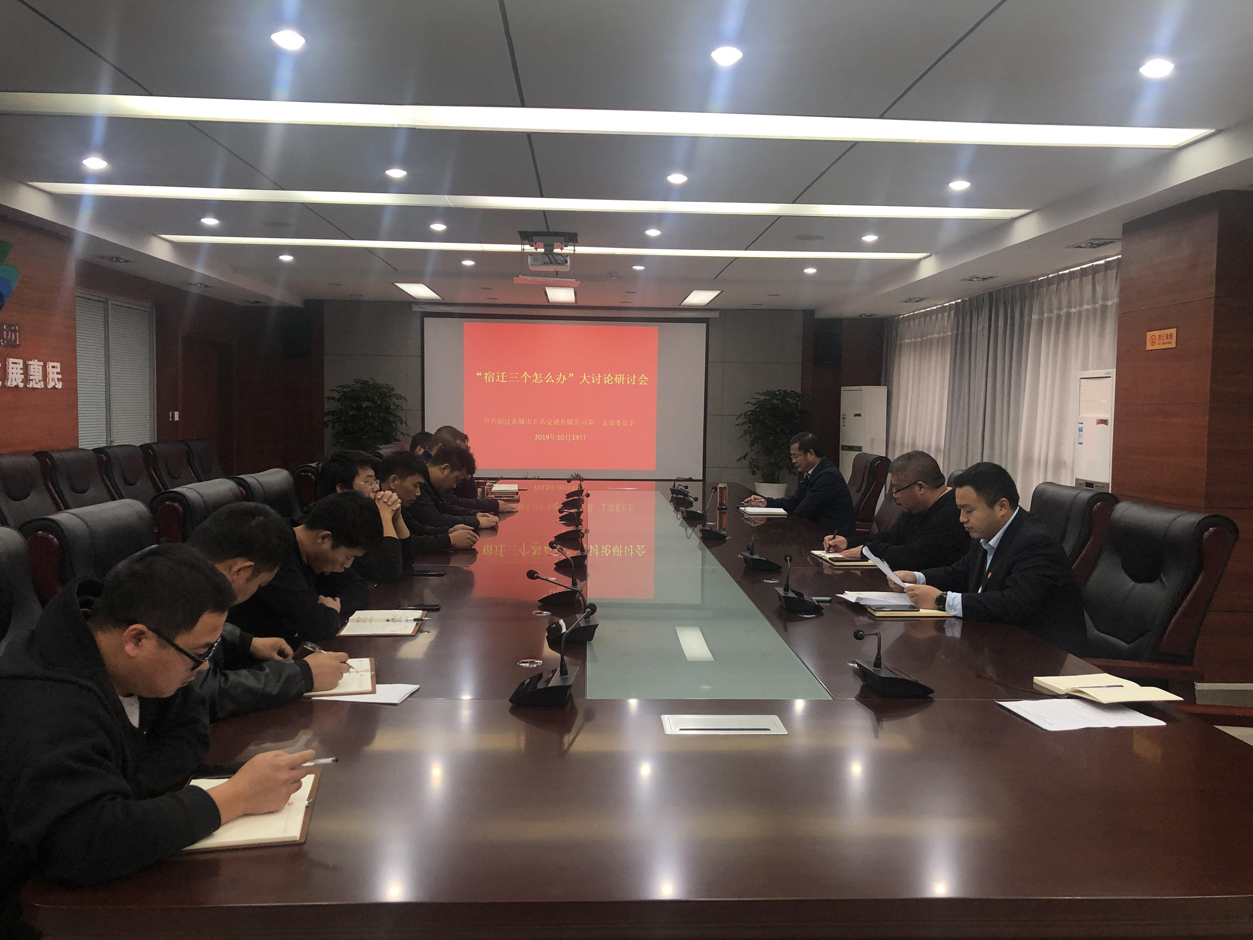 10月19日上午,公交公司第二黨支部在黨性教基地組織開展以“宿遷三個怎么辦”大討論為主題的專題學習研討會。