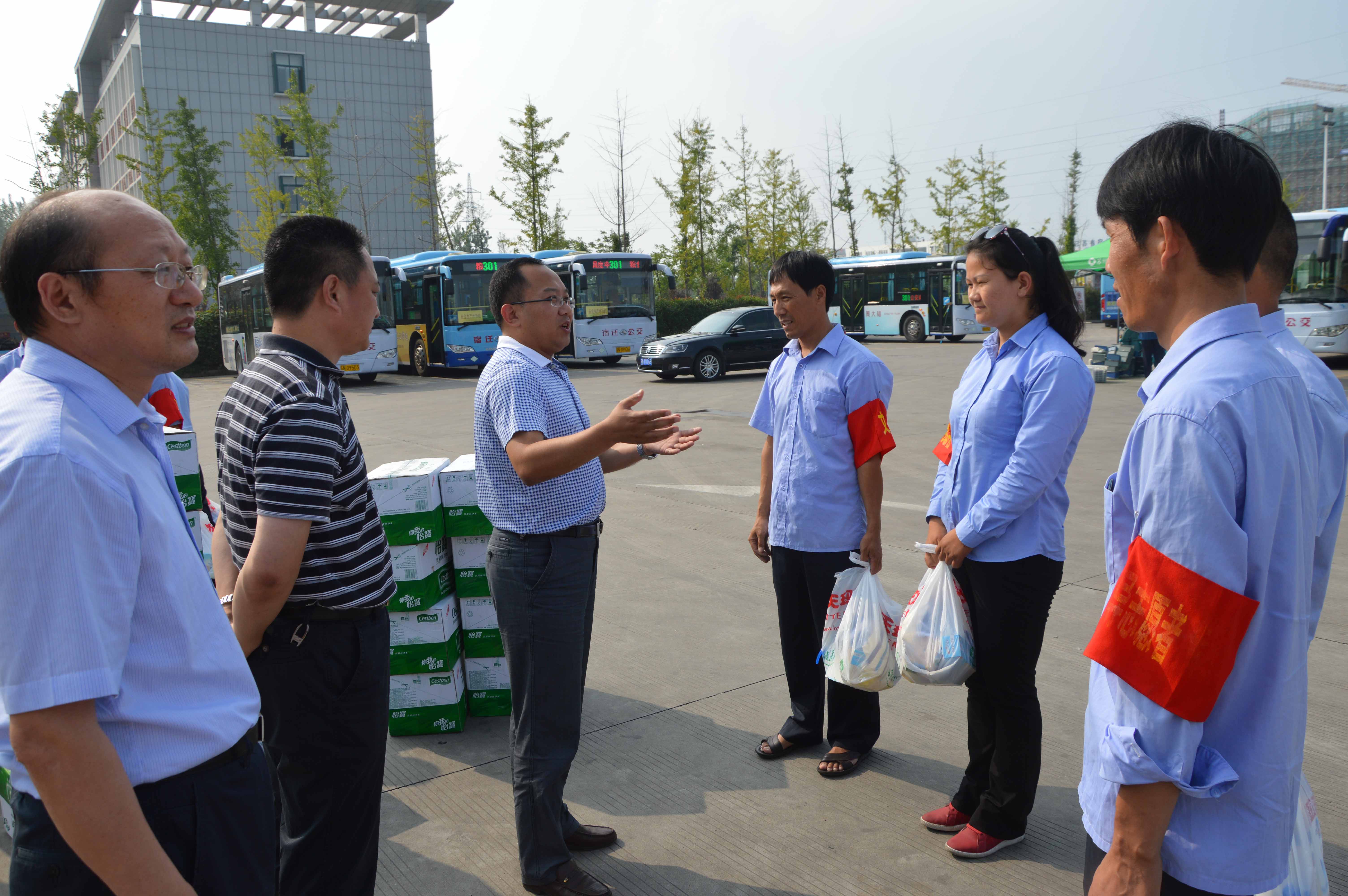 9月1日下午,市交通運輸局黨委委員、鐵路辦副主任孫恩杰和市局財務處長趙林華一行在市公交公司總經理汪衛東的陪同下,走進市公交調度指揮中心調度站,對公交營運一線職工進行了走訪慰問,為他們送上純凈水及毛巾、香皂、洗發水等物品和市局黨委的問候。