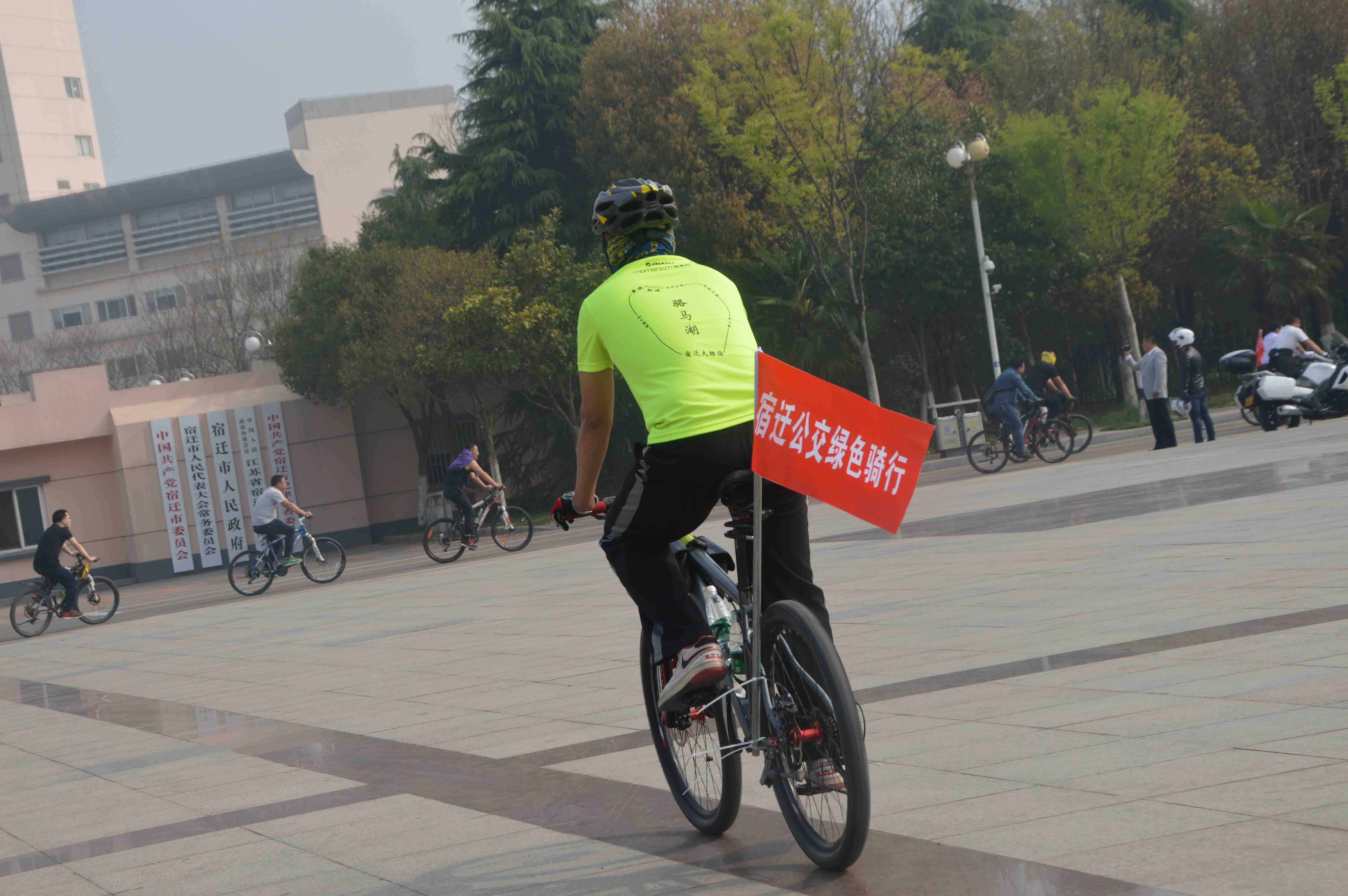 上午9時(shí),插滿“宿遷公交綠色騎行”紅色旗幟的自行車(chē)隊(duì)伍由宿遷市政府廣場(chǎng)出發(fā),沿著駱馬湖畔,行至三臺(tái)山森林公園,最后返回公司駐地,全程約30公里。