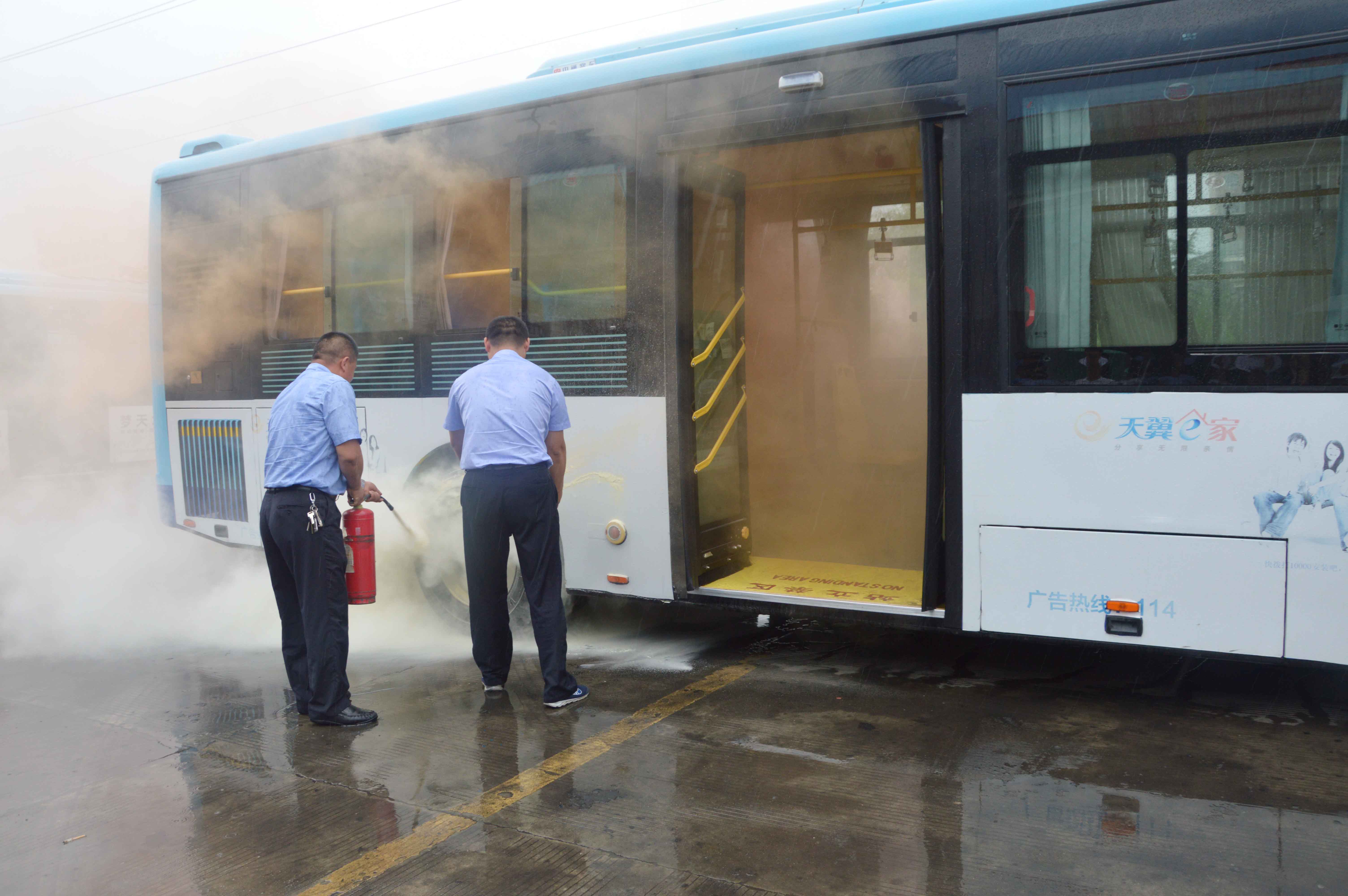 隨后,消防演練活動正式開展。在實戰演練中,一輛公交車在行駛中突然濃煙滾滾,駕駛員按照預定方案,立即靠邊停車,迅速打開車門,關閉電源及燃氣閥門,組織疏散乘客并撥打119報警電話報警,利用便攜式滅火器進行滅火演練。整個演練過程緊張有序,達到了預期的目的。