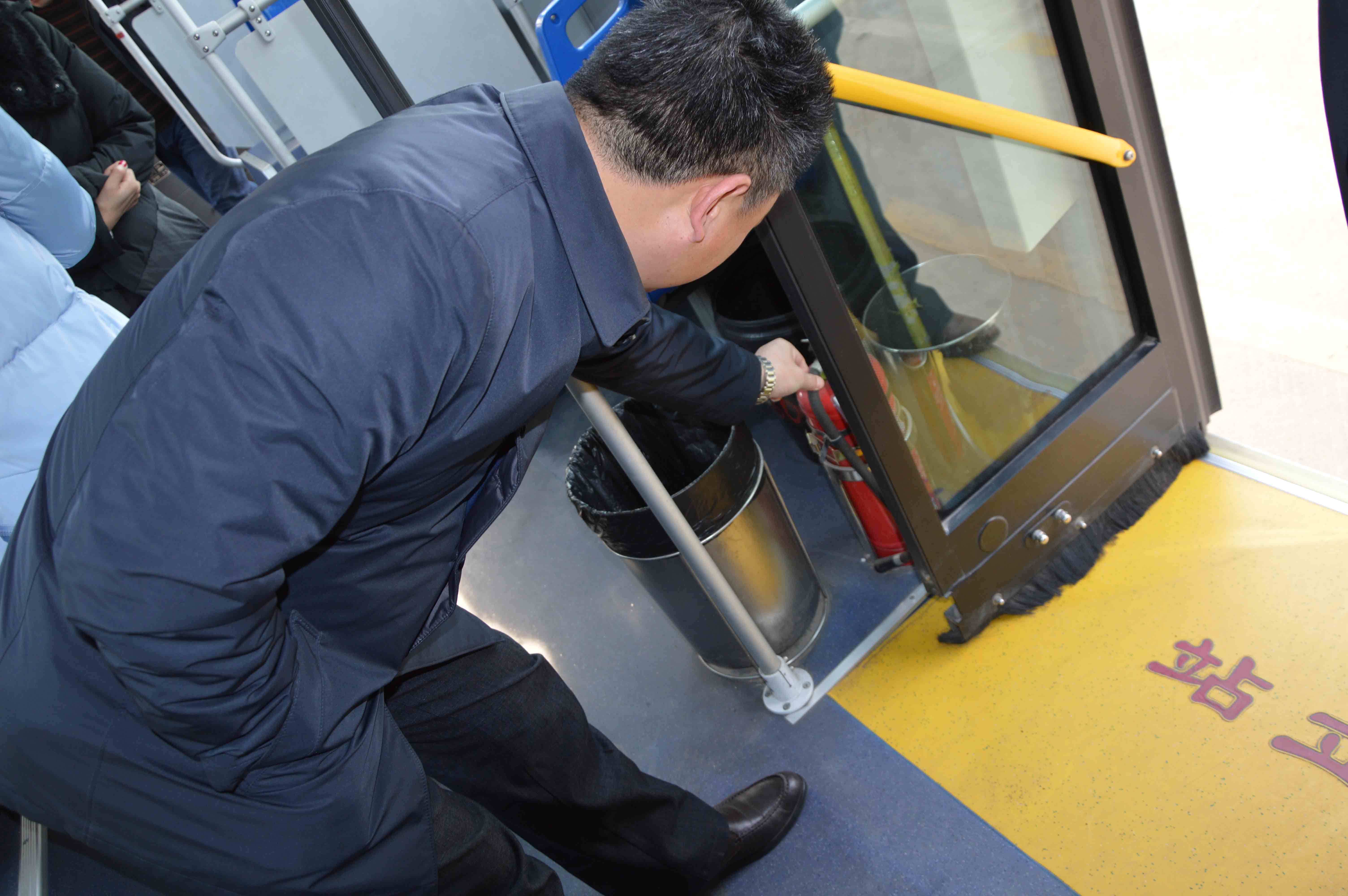 圖為:檢查公交車載安全設(shè)施
