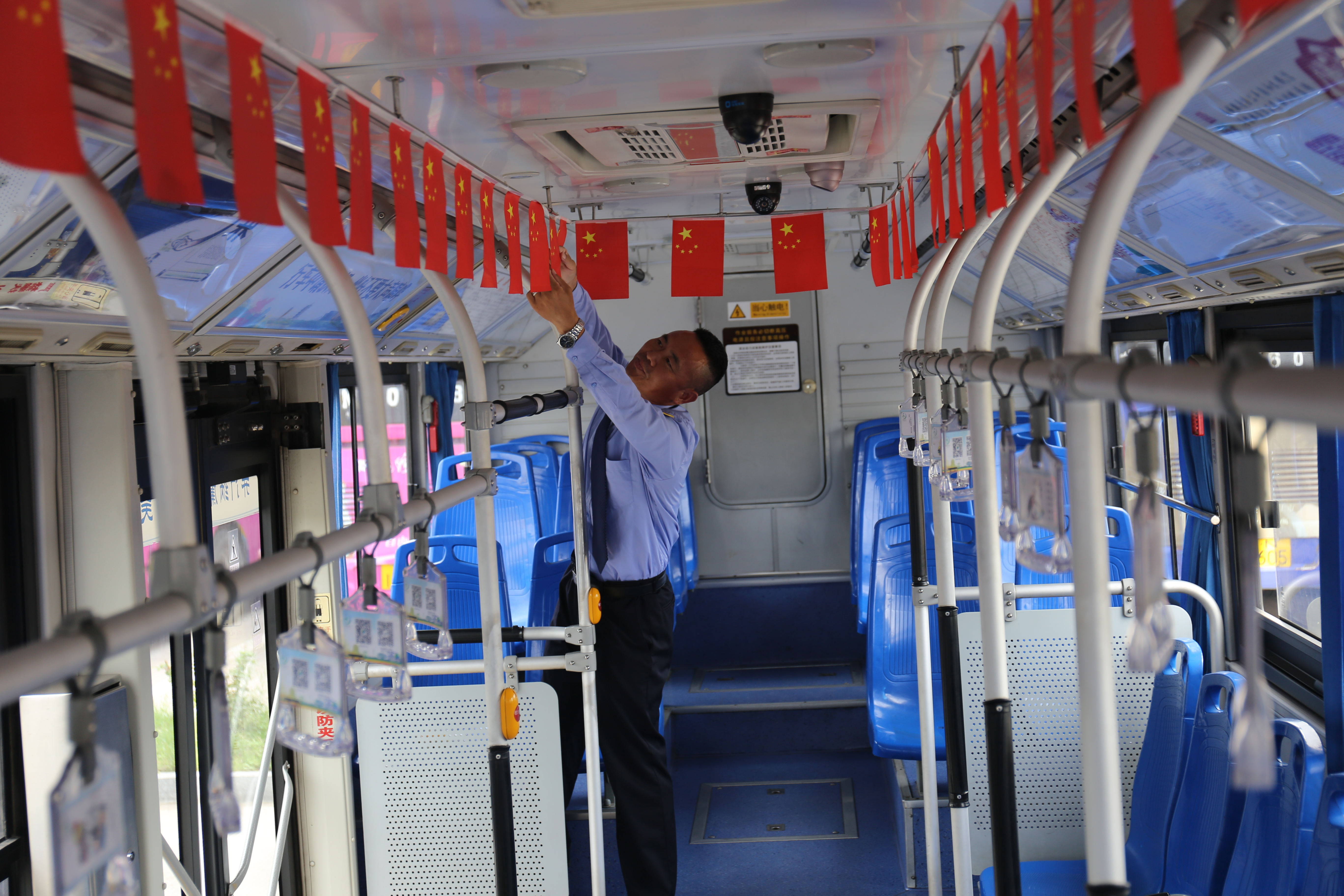 國慶前夕,公司精細謀劃,在門口綠化等地擺設花壇,在辦公樓和場站懸掛國旗、燈籠、慶祝橫幅等,電子站牌和公交車上的LED顯示屏,還滾動播出“熱烈慶祝中華人民共和國成立70周年”等宣傳標語,公交車身及候車亭張貼迎大慶宣傳畫面,積極營造國慶節喜慶、歡樂、祥和的節日氛圍。