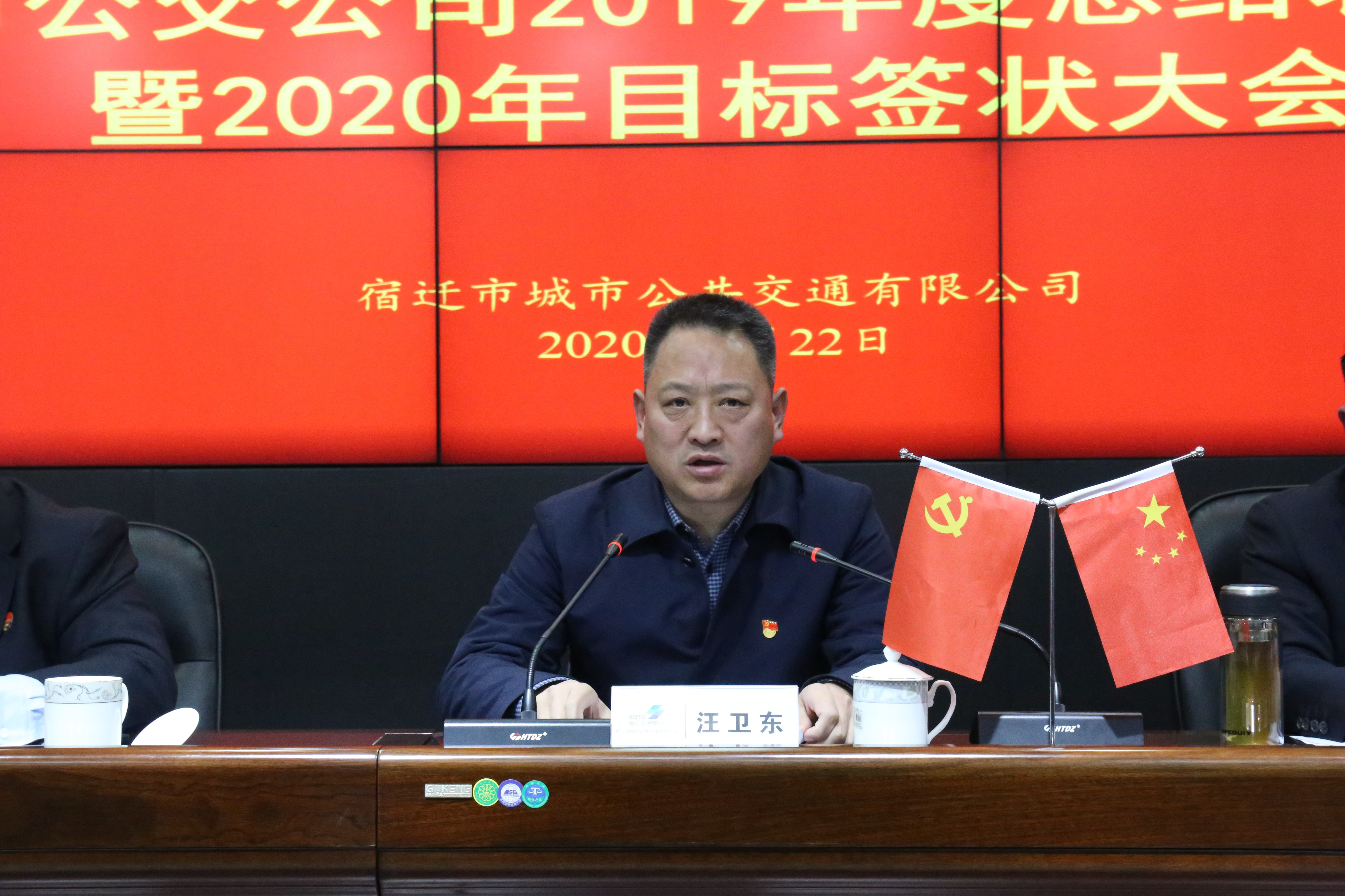 公司黨總支書記、朱宗明全面總結了2019年公司經營工作并部署2020年工作主要目標和重點任務。朱宗明強調,2020年既是“十三五”規劃收官之年,爭創“省級公交優先示范城市”決勝之年,更是全市公交資源國有化改革、財政補貼機制優化改革之年,公司必須;嚴格落實黨的十九大關于“建設交通強國”,全省“六個高質量發展”及我市“六增六強”提出具體要求,迅速推動企業管理轉型架構重造,實現高質量跨越式發展,全力譜寫宿遷公交發展新篇章: