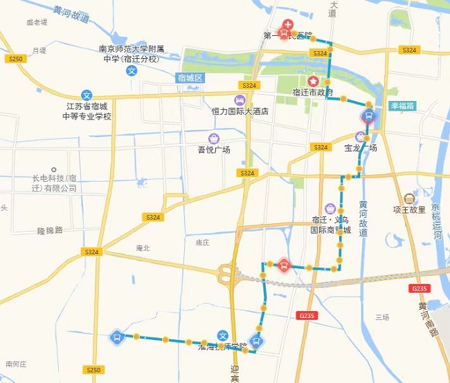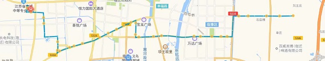 (四)318路。將現(xiàn)市第一人民醫(yī)院公交首末站—頤和路—濱河路—迎賓大道—洪澤湖路—世紀大道—青海湖路—平安大道—西湖路—發(fā)展大道—項王路—項王東路—珠江路—學海路—黃浦江路—洪澤湖東路—漢江路—項王東路—張家港大道—雪峰山路—楊舍路—梨園灣路段,優(yōu)化為市第一人民醫(yī)院公交首末站—宿支路—發(fā)展大道—洪澤湖路—青年路—西湖路—西湖東路—珠江路—黃山路—雪峰山路—楊舍路—梨園灣。
