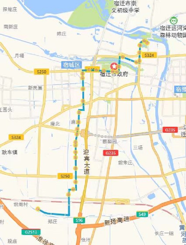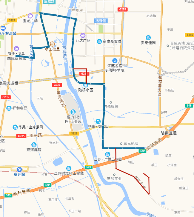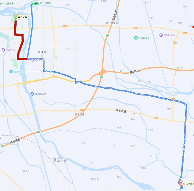 (五)802路。將現(xiàn)通湖大道—姑蘇路—通達大道—蘇州路—人民大道—廈門路—發(fā)展大道—項王路—項王東路—珠江路—珠江路公交首末站路段,優(yōu)化為通湖大道—金雞湖路—通達大道—玄武湖西路—振興大道—吉林路—渤海路—青海湖西路—迎賓大道—洪澤湖路—發(fā)展大道—宿支路—市第一人民醫(yī)院公交首末站。
