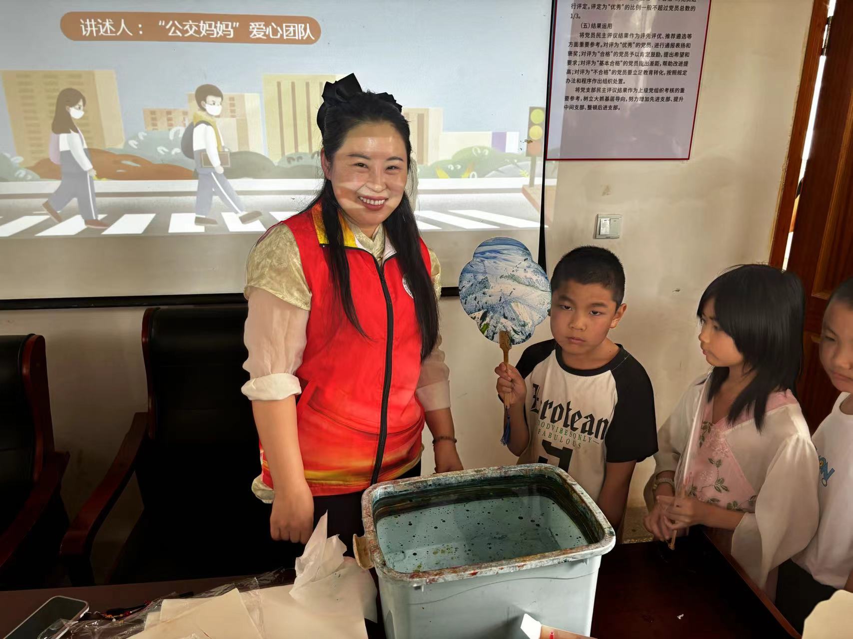 最后,宣講員帶領孩子們開展非遺漆扇手作體驗活動,詳細介紹了漆扇的歷史淵源和文化內涵,現場展示了漆扇的制作步驟和技巧。孩子們屏氣凝神,全心投入,繪出了一把把形色各異、圖案精美的扇子。