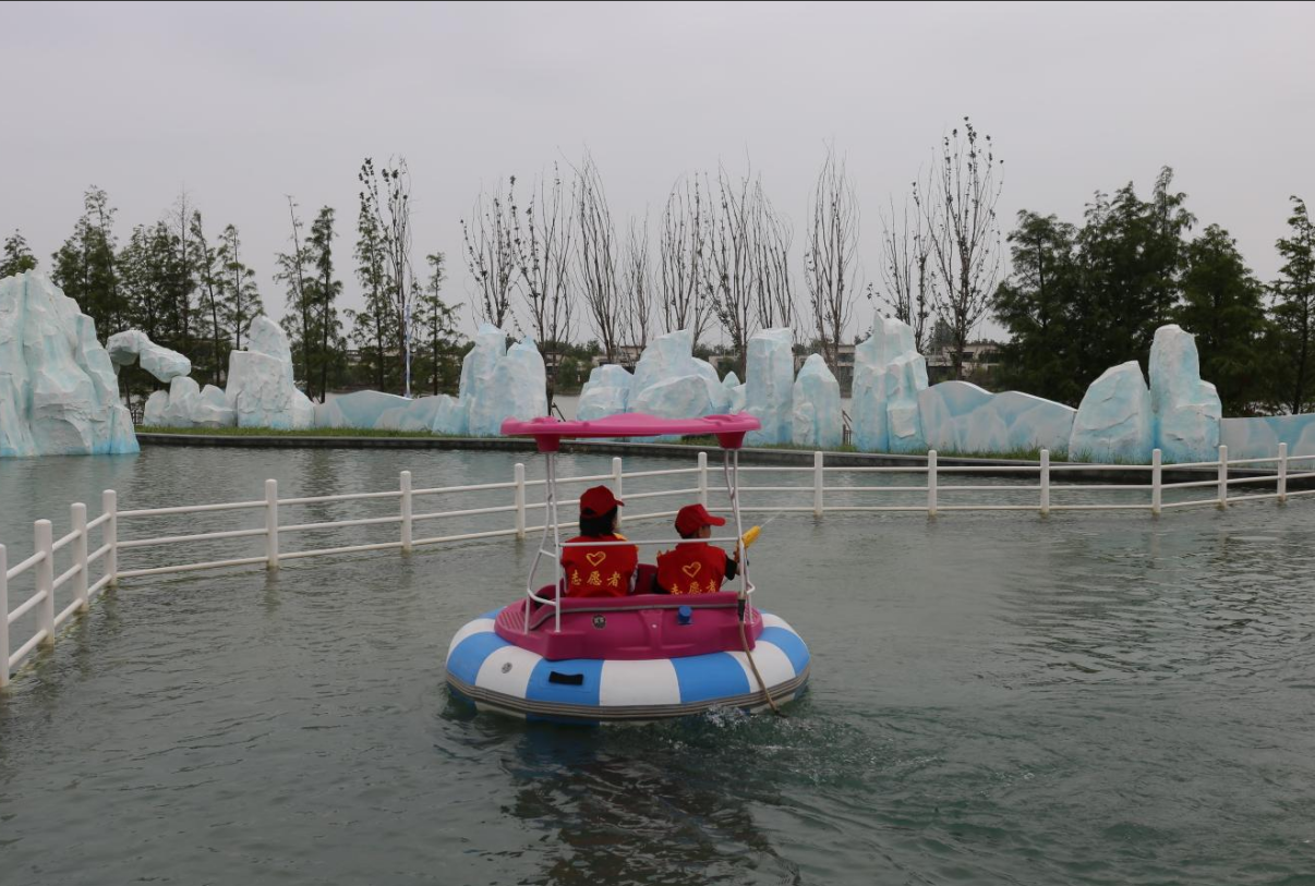 到達活動地點后,孩子們立刻被豐富多彩的游樂項目所吸引,他們在志愿者們的陪伴下,一起做劃船、一起乘坐“拖拉機”、一起攀巖,他們的歡聲笑語回蕩在整個景區。